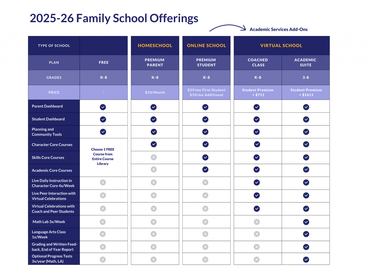 Family School offers multiple plans designed to support different homeschooling and online learning needs. This guide provides a clear, side-by-side comparison of every plan so families can choose the option that best suits their student.