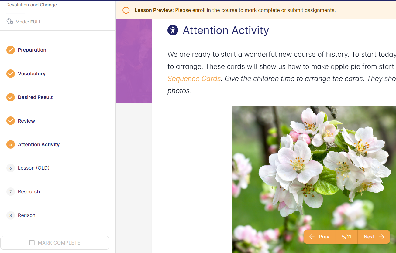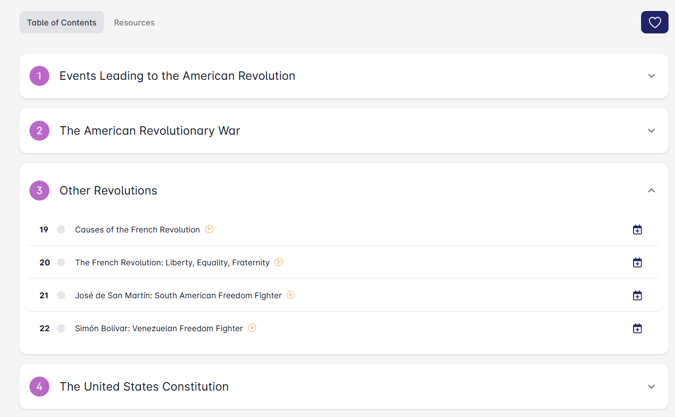Each Family School course is organized in a consistent way to help parents and students easily find lessons, resources, and learning materials. This article explains what you will see when you open a course and how to navigate it.